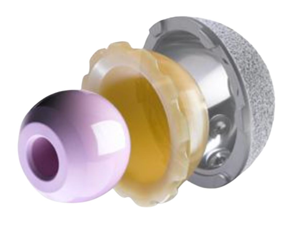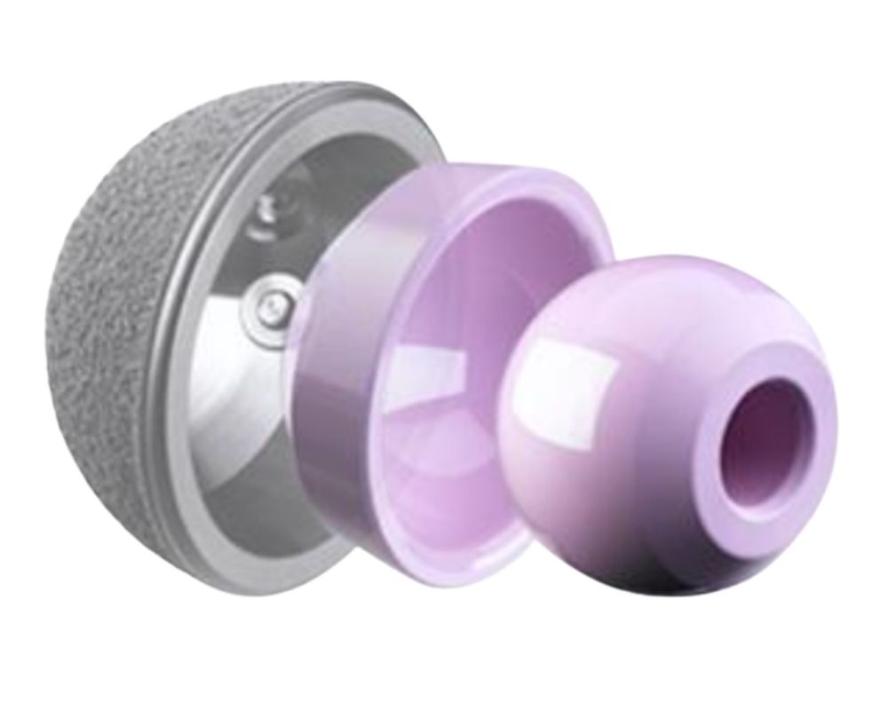 È un impianto basato su un sistema a doppia articolarità, composto da una testina femorale da 28 mm che si muove all’interno di una cupola di polietilene, a sua volta libera di ruotare all’interno di una coppa metallica più grande rivestita in titanio.