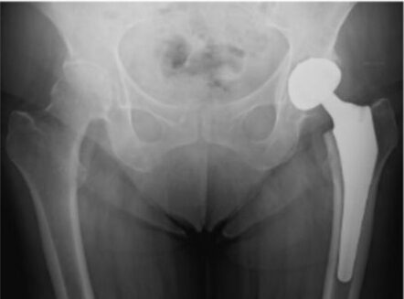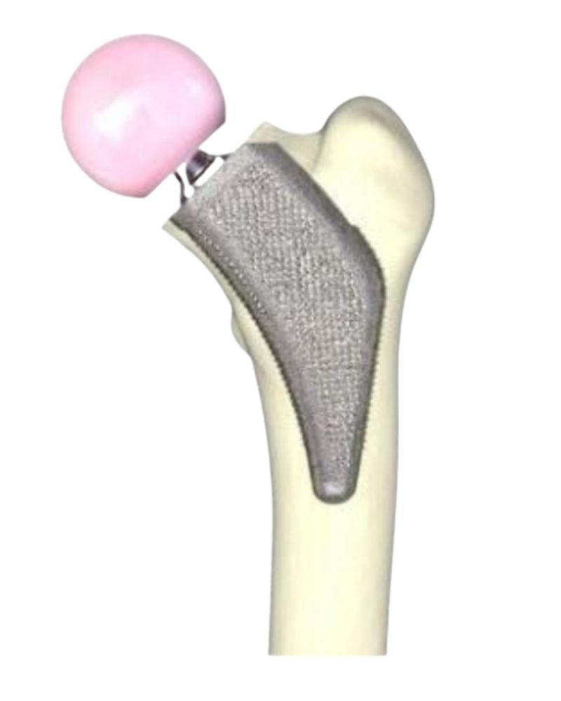 Quando possibile, si preferisce impiantare una protesi a completo ancoraggio biologico, costituita da una coppa acetabolare e da uno stelo femorale in titanio trattato.
